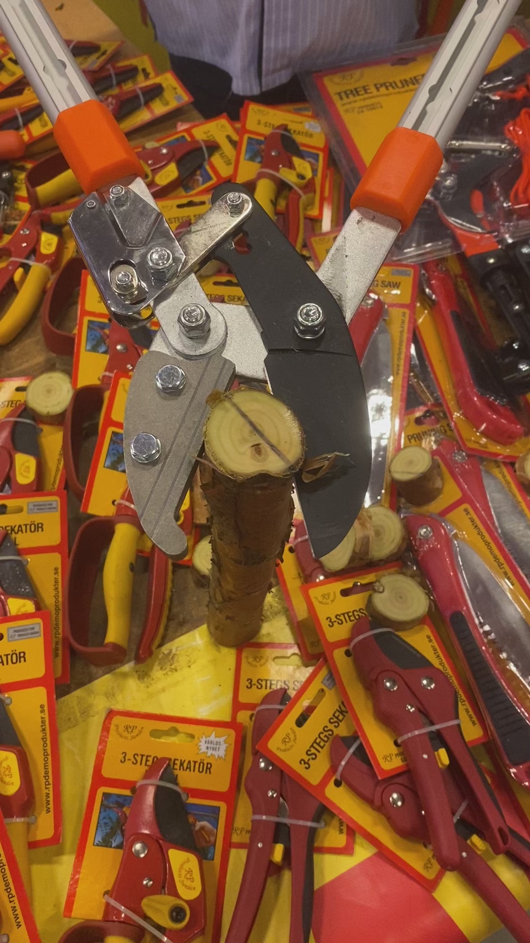 Detta är vår klassiska trestegssekatör, som har sålts över hela Europa. Med en automatisk växling anpassar sig sekatören mellan upp till fyra olika lägen beroende på motståndet, vilket gör klippningen både effektiv och kraftbesparande. Den har en imponerande klippkapacitet på 28 mm och är tillverkad med ett vasst och slitstarkt blad av SK5-kolstål, vilket ger lång hållbarhet och rena snitt.